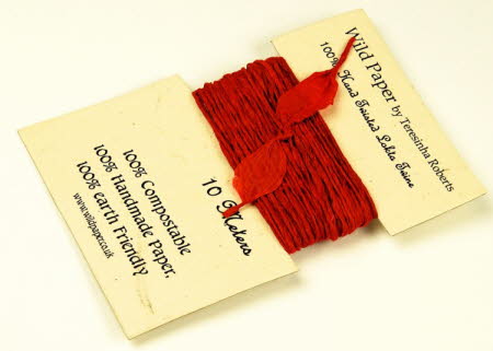 The string can be opened up to produce a variety of decorative effects as shown in the photo. Each 10 metre length of lokta paper string is supplied on a 15 cm by 10 cm paper card.
